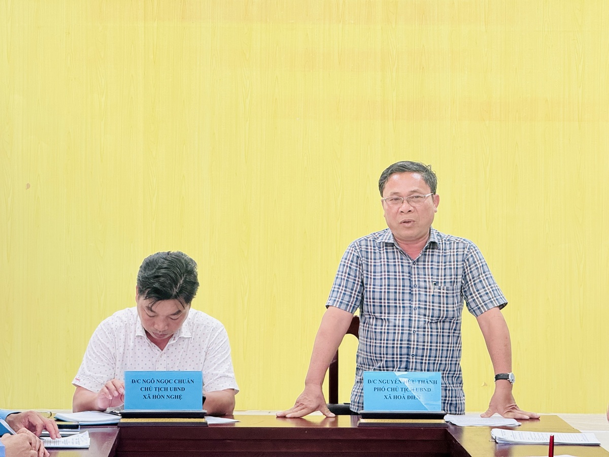 Đồng chí Nguyễn Hữu Thành, Phó Chủ tịch UBND xã Hòa Điền, Phó Trưởng Ban bầu cử số 5 làm việc với lãnh đạo xã Hòn Nghệ về công tác chuẩn bị bầu cử