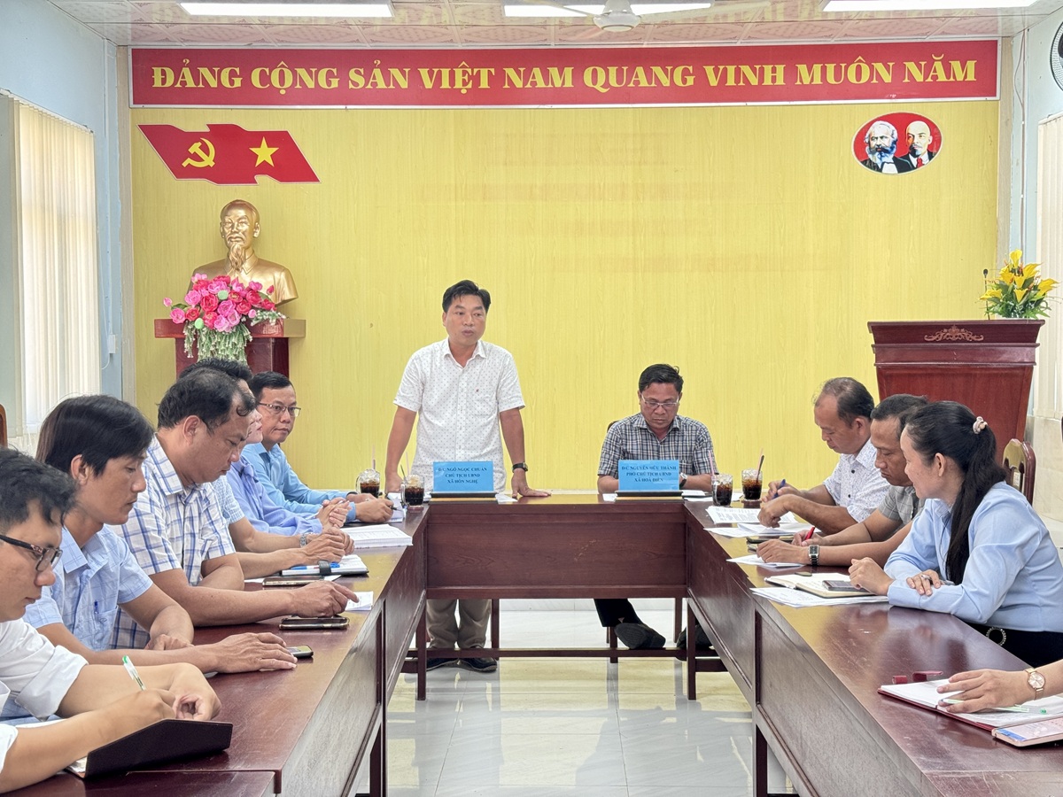 Đồng chí Ngô Ngọc Chuẩn, Chủ tịch UBND xã Hòn Nghệ phát biểu tại buổi làm việc