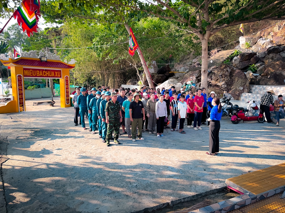 Hoạt động nhằm chuẩn bị tốt các điều kiện phục vụ Lễ vía Miếu Bà Chúa Xứ Hòn Nghệ năm 2026, đồng thời góp phần xây dựng cảnh quan môi trường xanh – sạch – đẹp, nâng cao ý thức cộng đồng trong bảo vệ môi trường, đặc biệt là môi trường biển đảo.