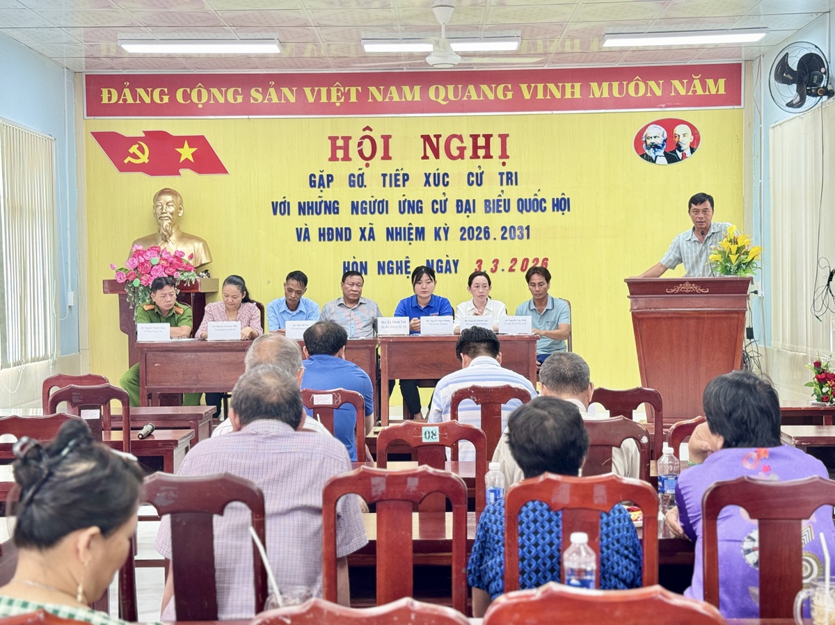 Nằm trong Kế hoạch tổ chức Hội nghị tiếp xúc, gặp gỡ giữa cử tri với người ứng cử đại biểu HĐND các cấp nhiệm kỳ 2026 - 2031, ngày 02/3/2026, tại các Đơn vị bầu cử trên địa bàn xã, Ban Thường trực Ủy ban MTTQ Việt Nam xã Hòn Nghệ tổ chức hội nghị tiếp xúc, gặp gỡ giữa cử tri với những người ứng cử đại biểu HĐND xã tại các Đơn vị bầu cử.