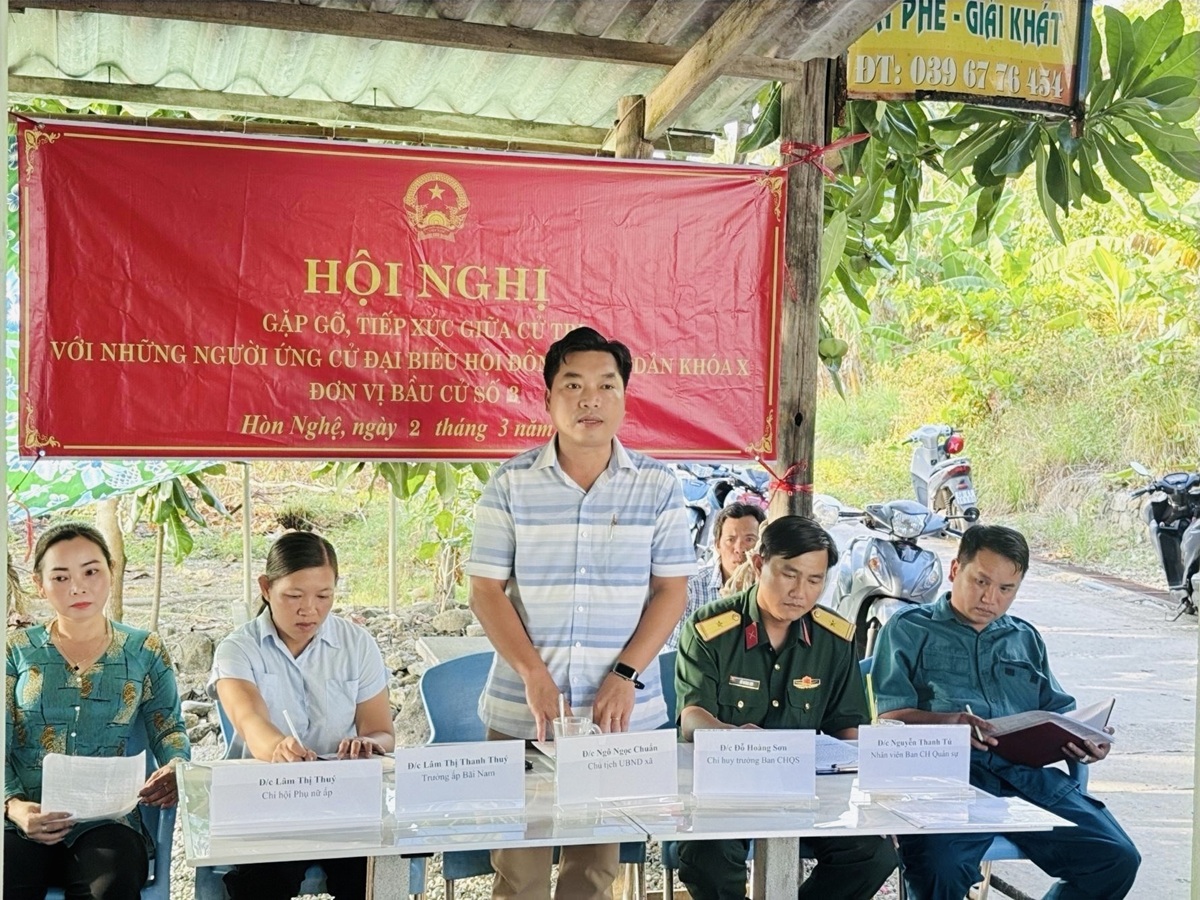 Đồng chí Nguyễn Thanh Chúc, Trưởng Công an xã Hòn Nghệ bày tỏ quyết tâm, cam kết sẽ nỗ lực cao nhất để hoàn thành trách nhiệm của người đại biểu dân cử nếu được cử tri tín nhiệm