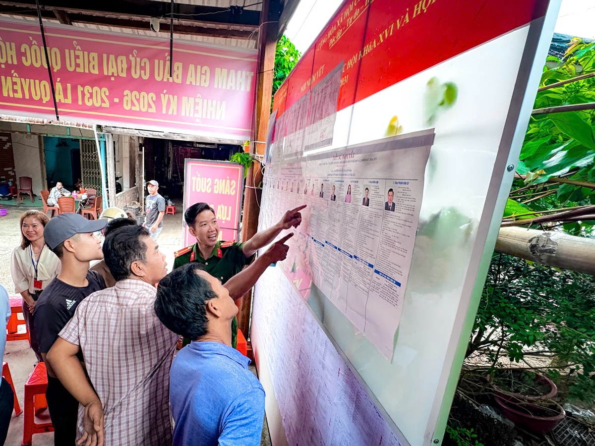Cử tri Khu vực bỏ phiếu số 2 xem lại tóm tắt tiểu sử của các ứng cử viên