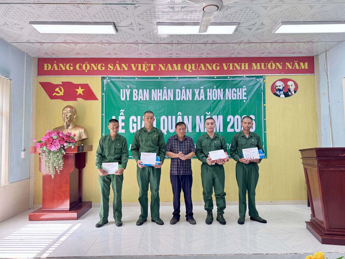 Lãnh đạo xã Hòn Nghệ tặng quà tân binh nhập ngũ năm 2026
